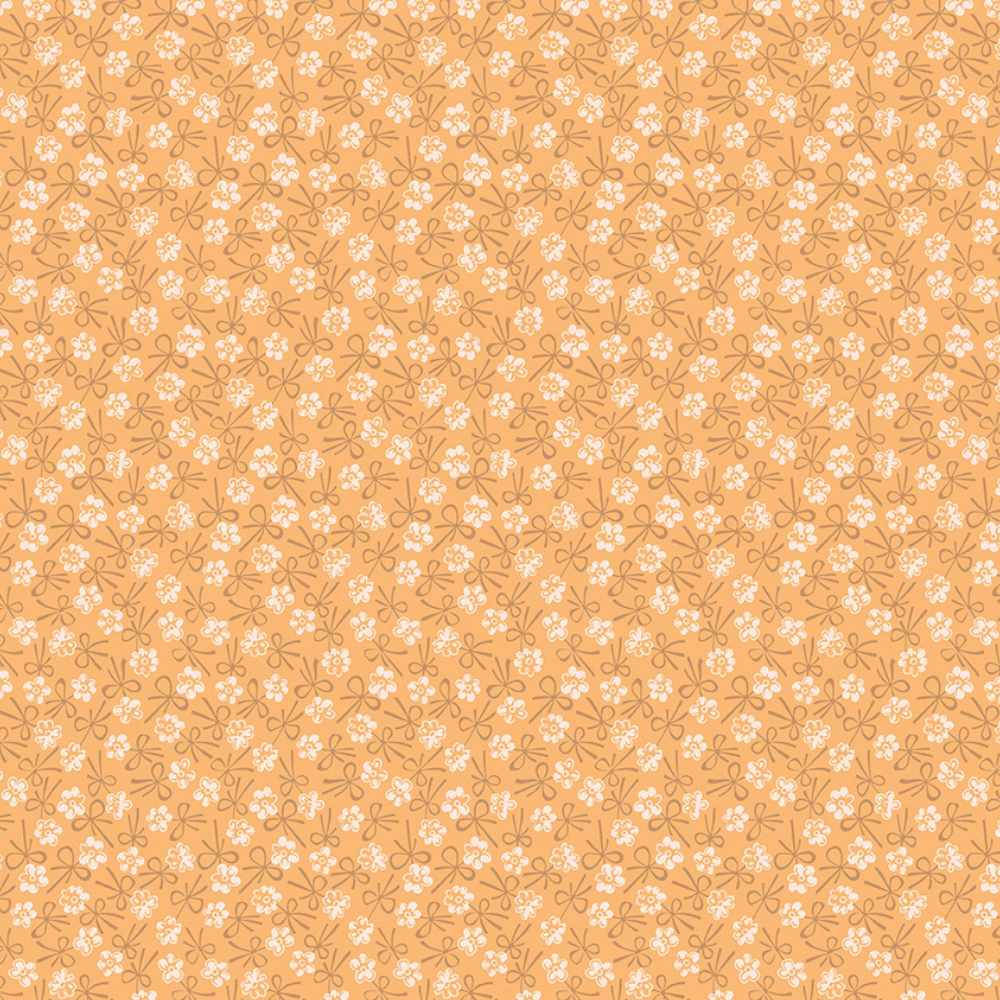 Farmer’s Daughter Bonnet Marigold C17165-MARIGOLD By Riley Blake Designs. This cotton print features blossoms and bows in cream on a yellow background.