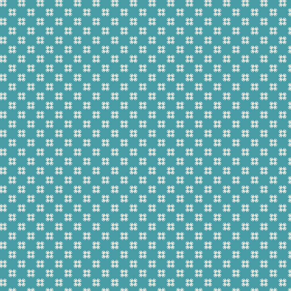 Farmer’s Daughter Quilting Raindrop C17176-RAINDROP By Riley Blake Designs. This cotton fabric features a geometric quilt block in cream on an aqua-blue background.