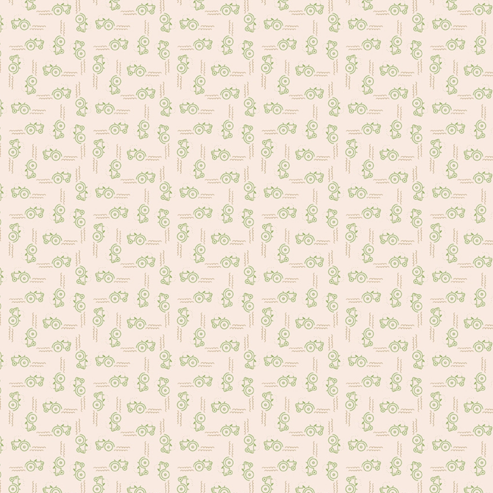 Farmer’s Daughter Tractors Background Thyme C17184-THYME By Riley Blake Designs. This cotton print features tiny tractors going all directions on a beige background.