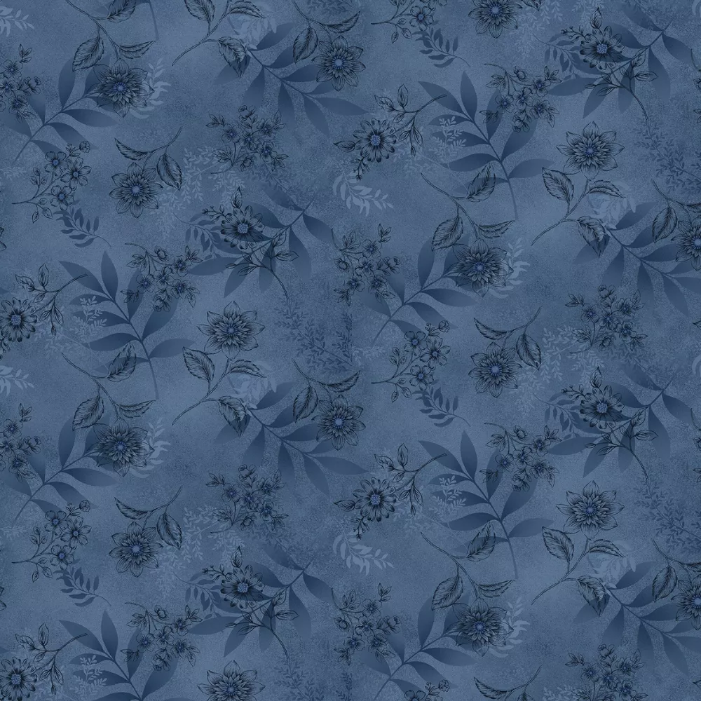 Flossie’s Flowers Large Botanical Tonal Blue 3369-77 By Henry Glass Fabrics