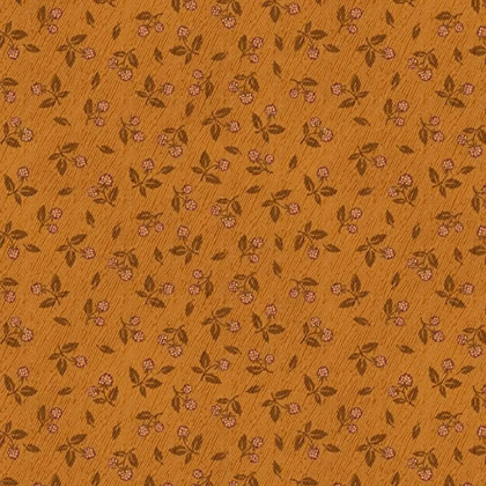 Flossie’s Flowers Tossed Berries Rust 3372-35 By Henry Glass Fabrics. This cotton fabric features tossed berries on a gold background.